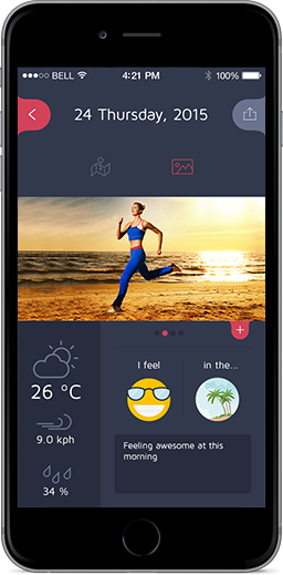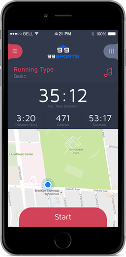 Running uses the phone’s GPS to track running activities. It records the pace, distance, total exercise time, estimated calories burned while letting runners set goals based on distance, duration, calories.